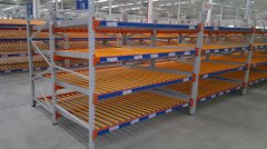 流利式貨架廣泛應用于制造業企業,商業機構,裝配車間以及出貨頻率較高的倉庫流利式貨架:采用輥輪鋁合金,鈑金等流利條,利用貨架臺架自重實現先進先出,存儲方便,適用于裝配線兩側配送中心等場所。重型流利式貨架適合人工存取,存取方便,單元貨架每層載重量通常在1000KG左右,貨架高度在2.5米以內。適于裝配線兩側的工序轉換、配送物流的揀選作業等場所,可配以電子標簽實現貨物的信息化管理。